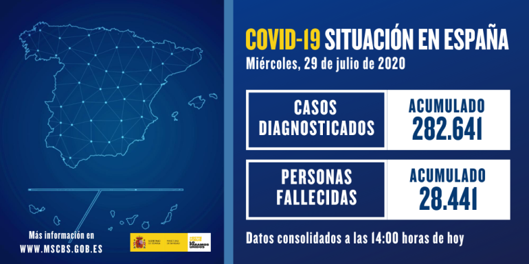 insert_link COVID-19 The latest official figures released by the Spanish Health Ministry yesterday todayJuly 30, 2020 15